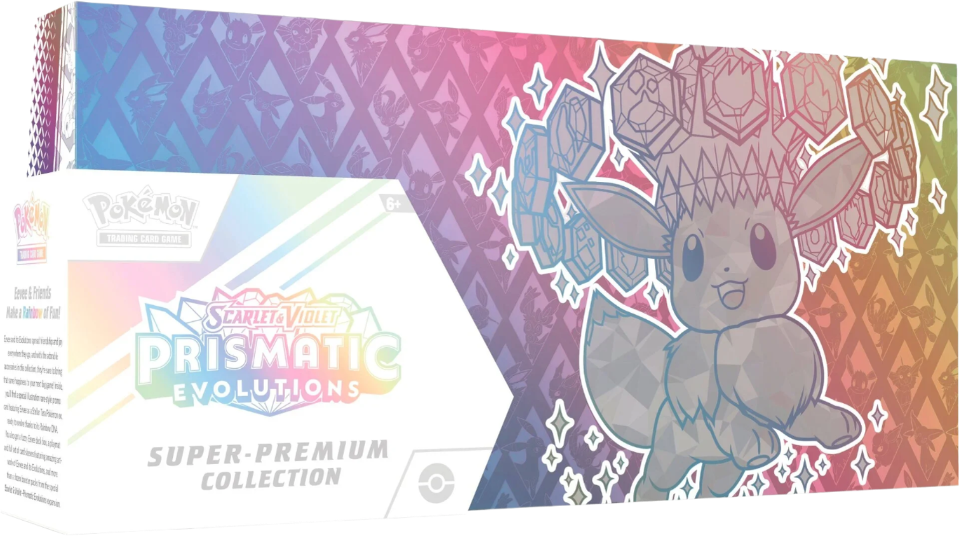La Prismatic Evolutions Super-Premium Collection es una edición especial del Juego de Carritoas Coleccionables Pokémon que celebra a Eevee y sus evoluciones con una variedad de artículos exclusivos y cartas promocionales. Esta colección es ideal para coleccionistas y jugadores que buscan enriquecer su experiencia con productos de alta calidad y diseño temático.