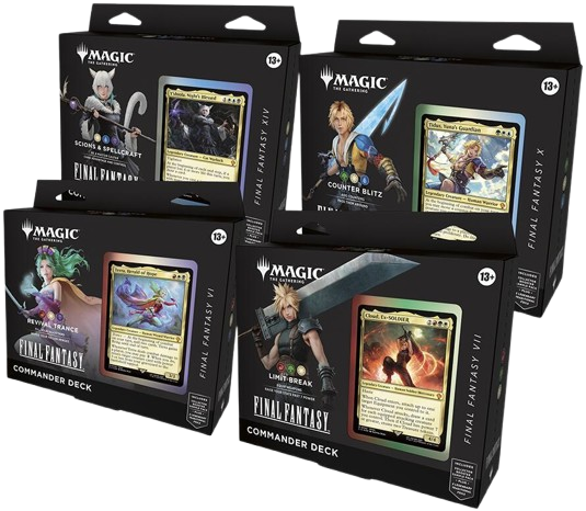En cada Commander Deck Bundle en Inglés de Final Fantasy por Magic The Gathering, encontrarás: